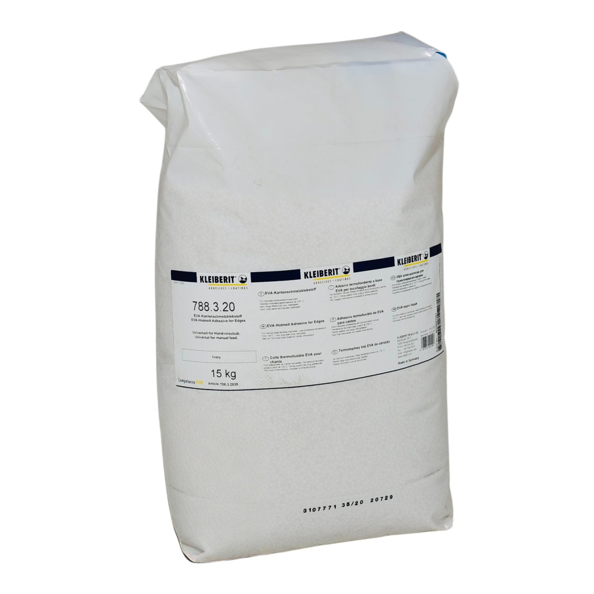 Клей-расплав поставляется в виде гранул белого цвета и цвета слоновой кости, упакованных в полиэтиленовые мешки по 25 кг.