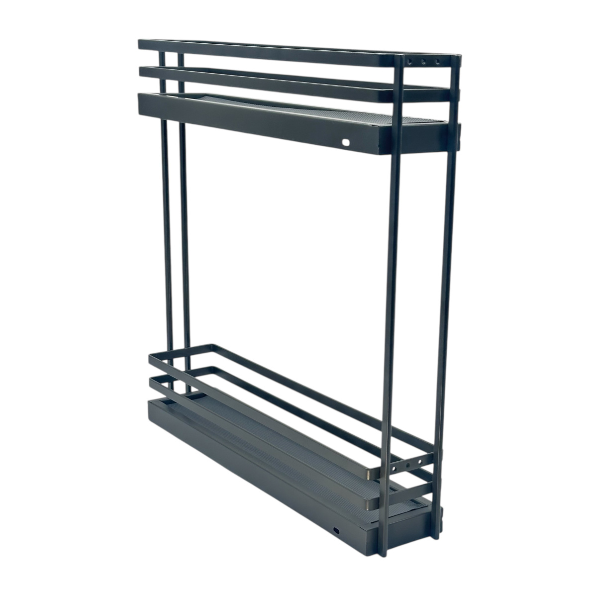 Корзина выдвижная 150мм серая Astra, двухуровневая на направляющих скрытого монтажа c доводчиком. Боковое крепление правое