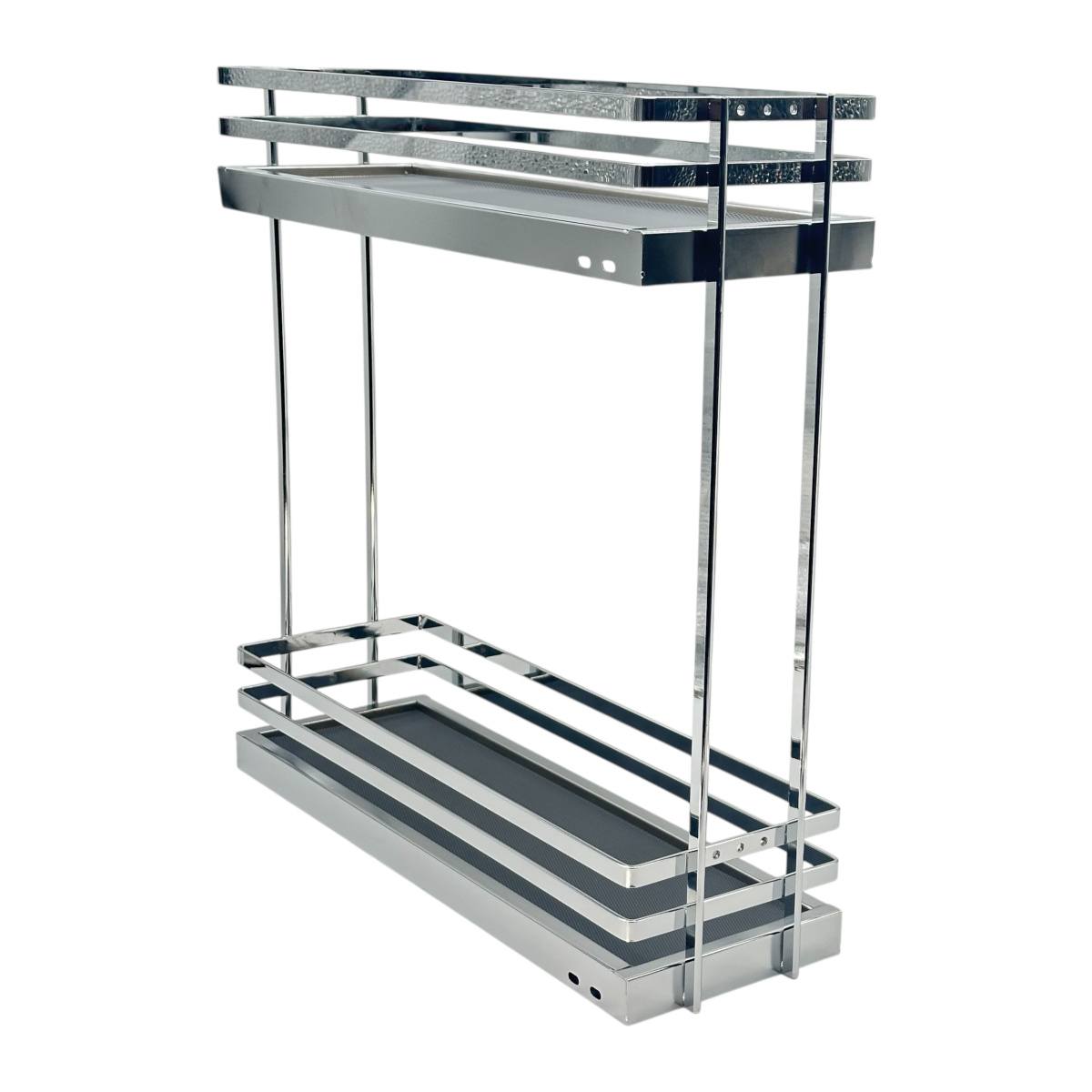 Корзина выдвижная 200мм хром Astra, двухуровневая на направляющих скрытого монтажа c доводчиком. Боковое крепление правое