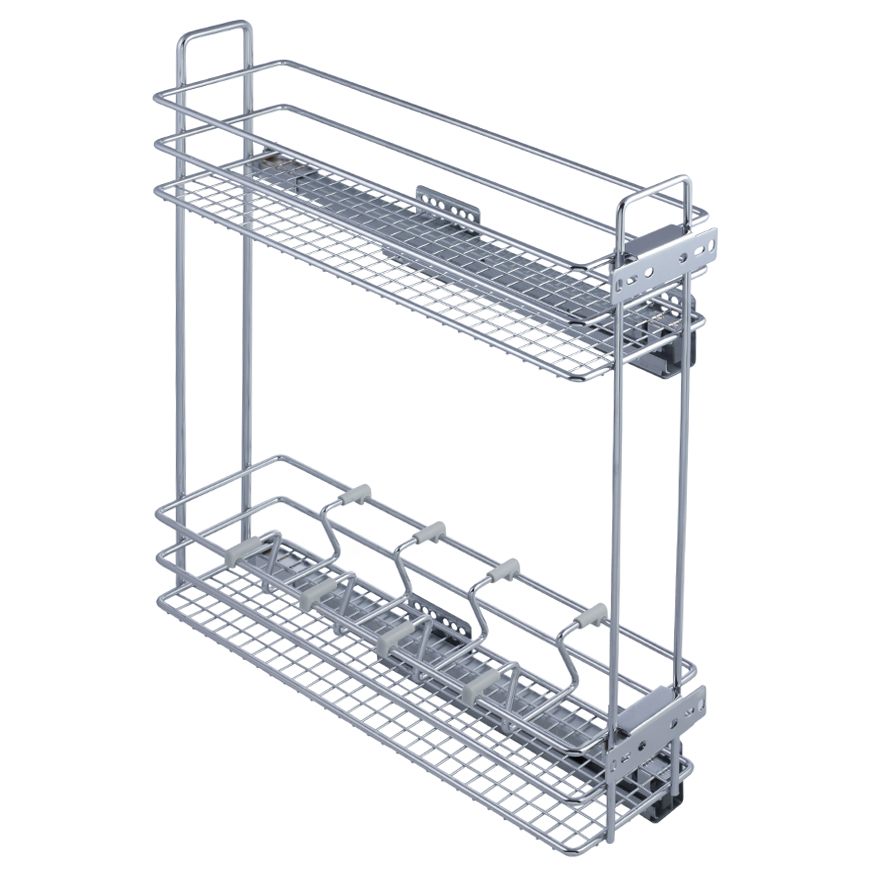 Корзина выдвижная 150мм хром Калибра, двухуров+2 делителя на направляющих скрытого монтажа, крепление боковое правое