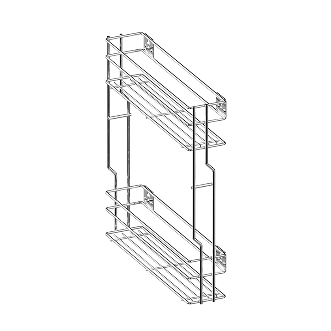 Двухуровневая боковая корзина Rejs Variant Multi , без направляющих, хром - выдвижная система хранения, устанавливаемая в нижний модуль кухонного гарнитура. Корзина изготовлена так, что в нее удобно ставить бутылки с напитками и жидкими продуктами питания, поэтому она также называется бутылочницей. Данная модель поставляется без направляющих в комплекте.