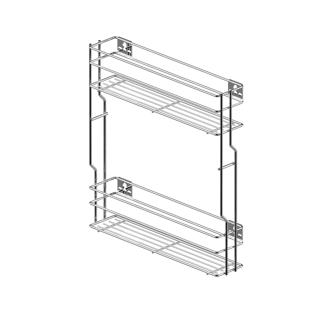 Двухуровневая боковая корзина Rejs Variant Multi , без направляющих, эффект хрома - выдвижная система хранения, устанавливаемая в нижний модуль кухонного гарнитура. Корзина изготовлена так, что в нее удобно ставить бутылки с напитками и жидкими продуктами питания, поэтому она также называется бутылочницей. Данная модель поставляется без направляющих в комплекте.