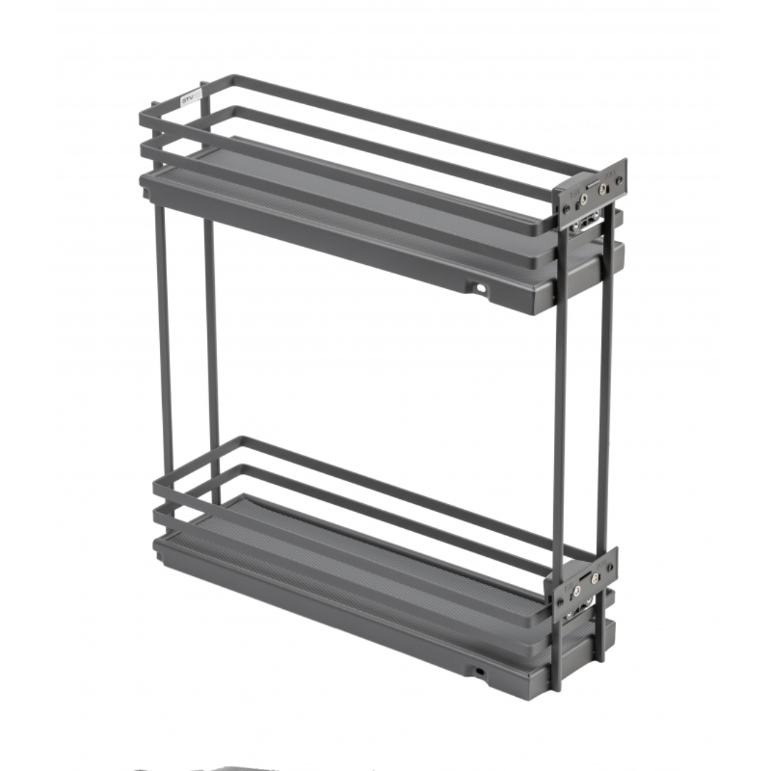 Двухуровневая боковая корзина MOVIX PRO 150 мм Cargo без направляющих, антрацит (плоский прут) - выдвижная система хранения, устанавливаемая в нижний модуль кухонного гарнитура. Корзина изготовлена так, что в нее удобно ставить бутылки с напитками и жидкими продуктами питания, поэтому она также называется бутылочницей.