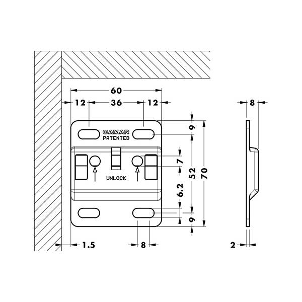 Кронштейн 60х70мм для подвески полок арт.807, отделка цинк
