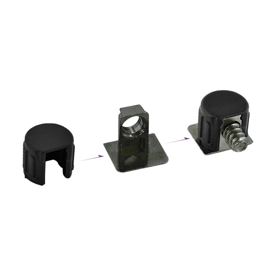 Полкодержатель скрытого монтажа AQ предназначен для установки полок толщиной от 16 мм. Основным преимуществом данного полкодержателя является простота и удобство установки. Полкодержатель состоит из металлической опоры полкодержателя с евровинтом и пластикового корпуса. Эта конструкция гарантирует не только прочную и надежную фиксацию, но и возможность собирать и разбирать мебельные модули для пробной сборки, хранения и перевозки мебели. Тонкая металлическая пластина опоры полностью закрывает пластиковый корпус полкодержателя и обеспечивает эстетичный вид любого стилистического решения вашей мебели.