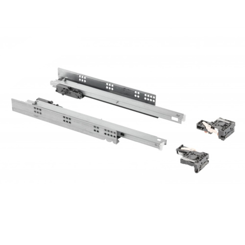 Направляющие скрытого монтажа MODERN SLIDE PRO полного выдвижения для деревянных ящиков с выталкивателем, с 3D-регулировкой, с синхронизацией открывания - механизмы, используемые в различных мебельных конструкциях с выдвижными ящиками. Характерная особенность направляющих Модерн Слайд - скрытый монтаж, когда их установка осуществляется не на боковины ящика, а под его дно. Данная модель MODERN SLIDE PRO предназначена для ящиков с толщиной боковых стенок 16-19 мм.