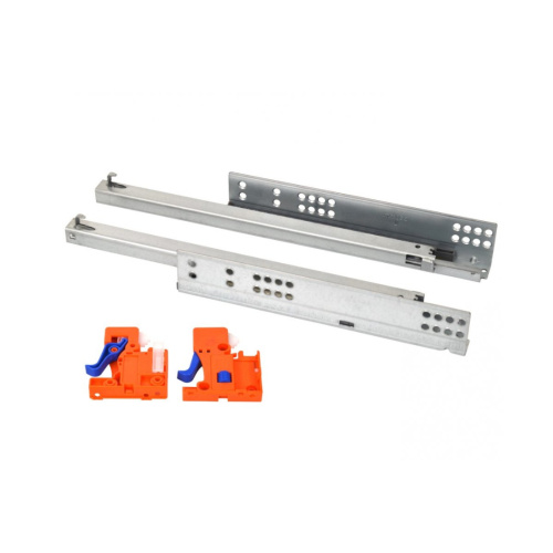 Направляющие MODERN SLIDE с 3D регулировкой частичного выдвижения для деревянных ящиков с доводчиком - механизмы, используемые в различных мебельных конструкциях с выдвижными ящиками. Характерная особенность направляющих Модерн Слайд - скрытый монтаж, когда их установка осуществляется не на боковины ящика, а под его дно.