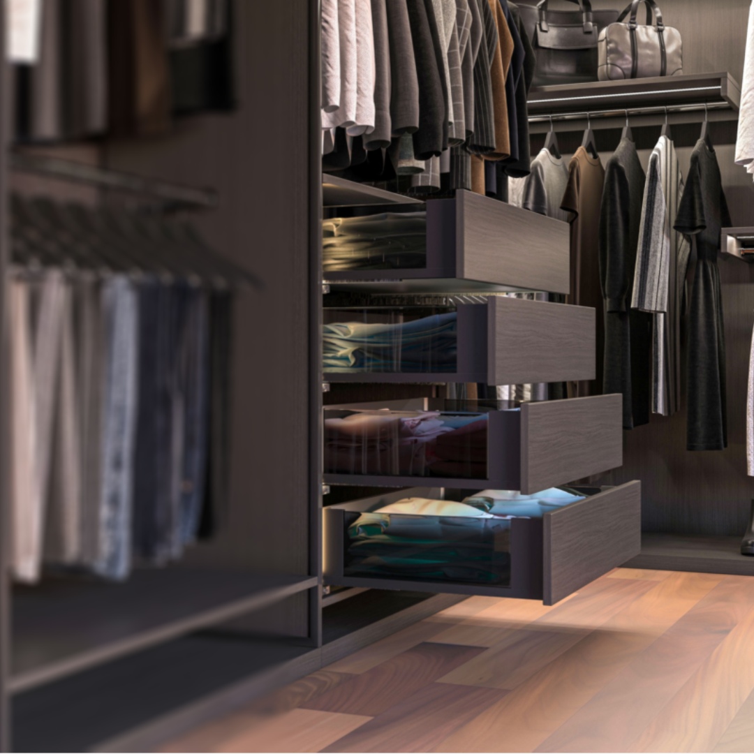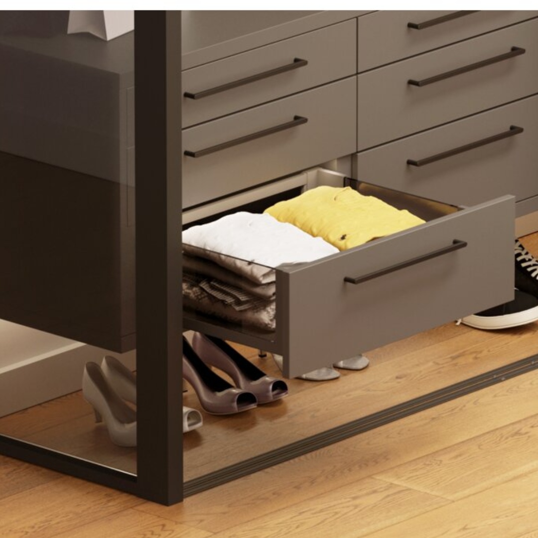 В первую очередь данная система предназначена для гардеробных, но также может использоваться в ванных комнатах и в кухонных помещениях.