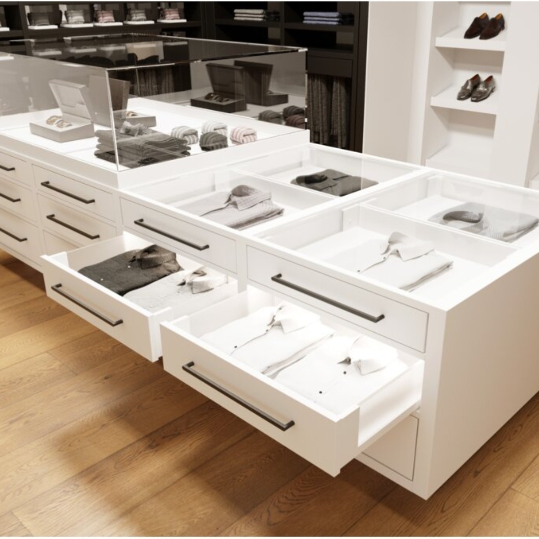 В первую очередь данная система предназначена для гардеробных, но также может использоваться в ванных комнатах и в кухонных помещениях.