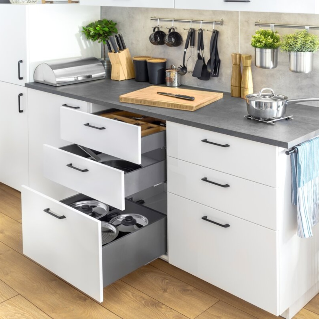 AXIS PRO L-500 мм, низкий H-86 мм, антрацит - система выдвижения нового поколения с повышенной эргономикой, для использования в кухонных гарнитурах и мебели для ванных комнат.