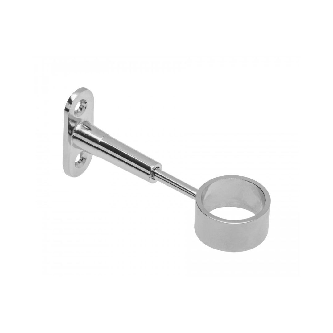 R50R Держатель - регулируемый кронштейн, используемый при сборке торгового оборудования из труб диаметром 25 мм. Представляет собой проходное дистанционное крепление. Диапазон регулировки ножки держателя - от 50 мм до 80 мм.
