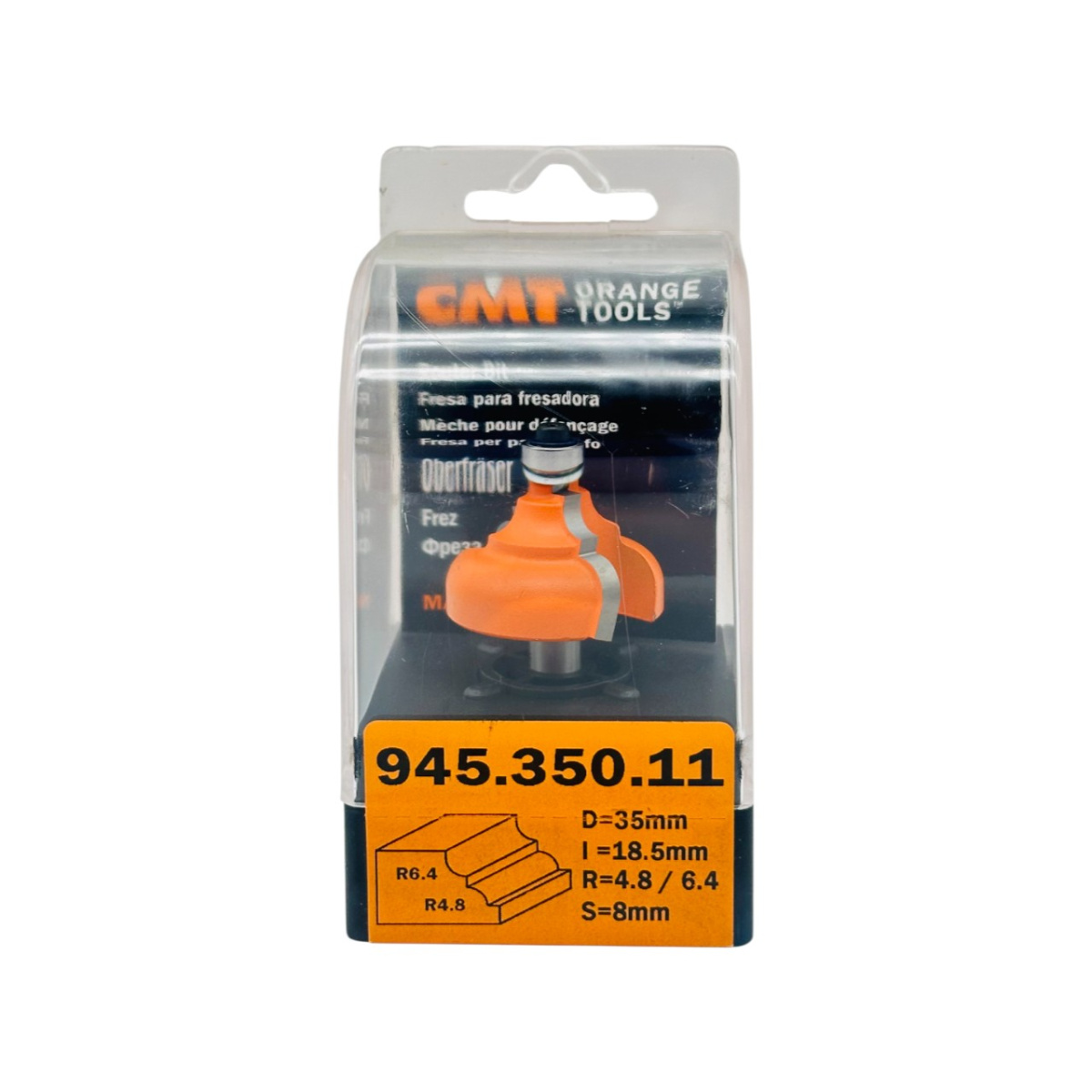 Фреза концевая профильная D=35,0 I=18,5 S=8,0 R=6,40 CMT классический S-профиль - это классическая калёвочная фреза с перевернутым профилем и полочкой, резделяющей кривые, для создания притягательных классических форм.