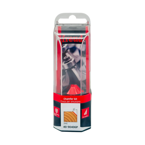 Фреза фасочная Freud диаметром 25 миллиметра, используюется для профессиональной обработки довольно широкого диапазона различного сырья (композиционные материалы, фанеру, твердую и мягкую древесину). Устанавливается на ручные или переносные вертикальные фрезерные машины. При снятии большого объема материала рекомендуется работать в несколько проходов.
