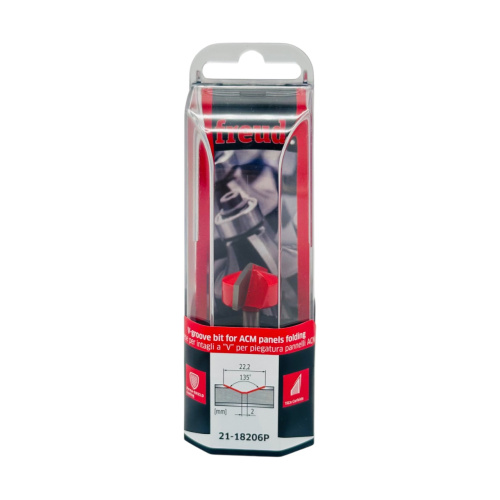 Фреза угловая V образная Freud диаметром 22.2 миллиметра для выборки пазов в АСМ, используюется для резки панелей АСМ. Устанавливается на станки с ЧПУ и другие автоматические вертикальные фрезерные машины, а также на ручные или переносные вертикальные фрезерные машины. При снятии большого объема материала рекомендуется работать в несколько проходов.