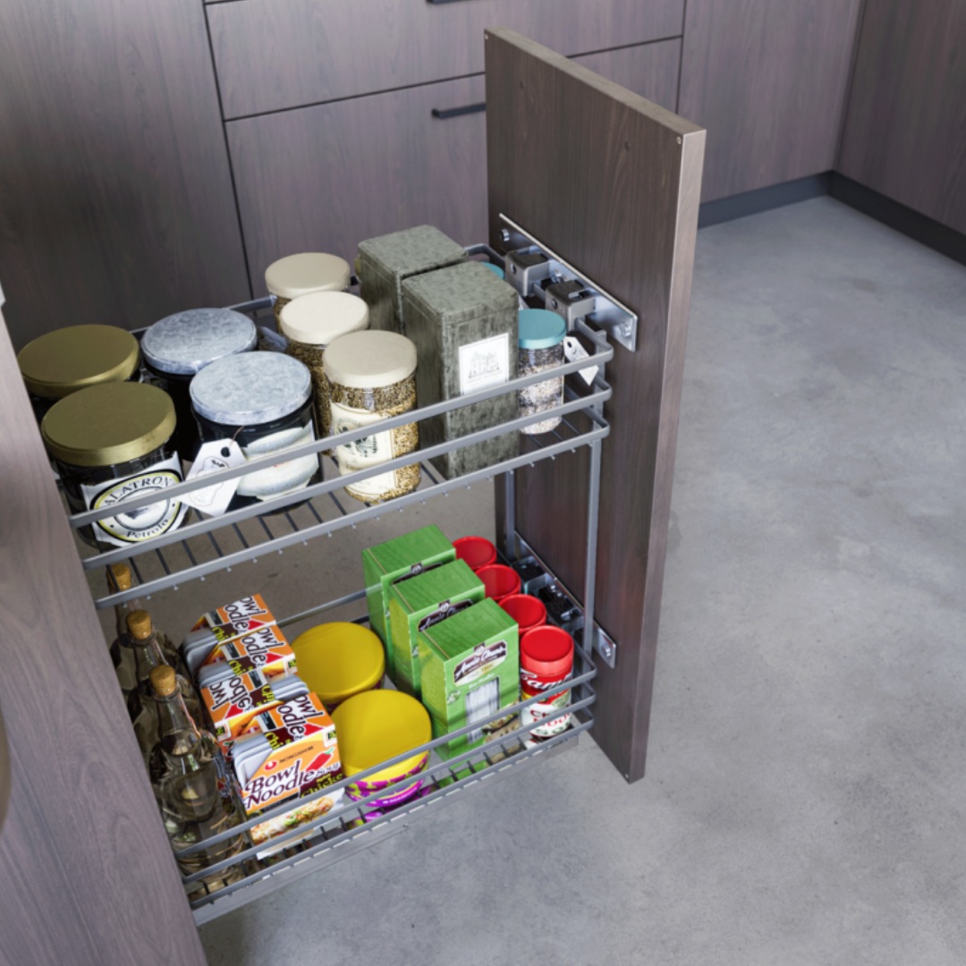 Карго-корзины из серии MOVIX представляют собой современную выдвижную корзину с полками, благодаря которой вы в совершенстве можете управлять пространством нижних кухонных шкафчика. Серии MOVIX были предназначены для создания практической кладовой на кухнях, идеальной для хранения бутылок и кухонных аксессуаров, которые всегда стоит иметь под рукой. Карго поперечный ящик MOVIX шир., 150, 200, 250, 300 мм. Высокое качество изготовления и тонкие детали обеспечивают выносливость, стабильность, удобное доступ к продуктам и неимещный внешний вид, в идеальном соответствии с модерн бокс мебелью. Максимальная нагрузка составляет 15 кг, что делает его надежным решением даже для интенсивного использования. Вся серии доступна в трех вневечных цветах: хром, белый и антрацит. *Кроме того, варианты диаметром 150 и 200 мм оборудованы четыре практических секции для удобной организации интерьеров.