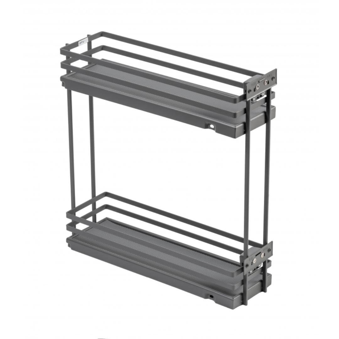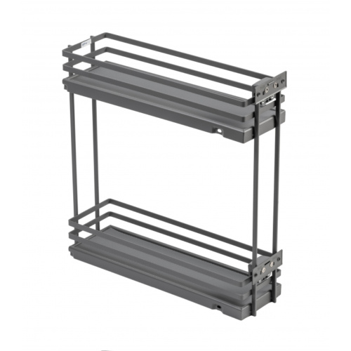 Двухуровневая боковая корзина MOVIX PRO 150 мм Cargo без направляющих, антрацит (плоский прут) - выдвижная система хранения, устанавливаемая в нижний модуль кухонного гарнитура. Корзина изготовлена так, что в нее удобно ставить бутылки с напитками и жидкими продуктами питания, поэтому она также называется бутылочницей.