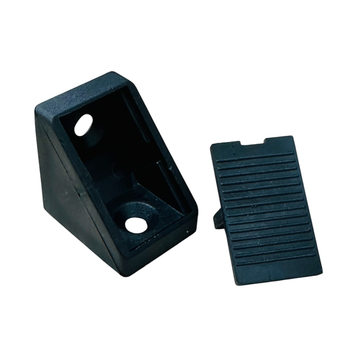 Уголок+крышка 0001 Черный - монтажное приспособление, используемое для установки полок в шкафу. Одна грань уголка крепится к стенке шкафа, а другая грань – к полке. После установки уголка шурупы маскируются декоративной крышкой. Уголки подбираются под цвет мебельной конструкции.