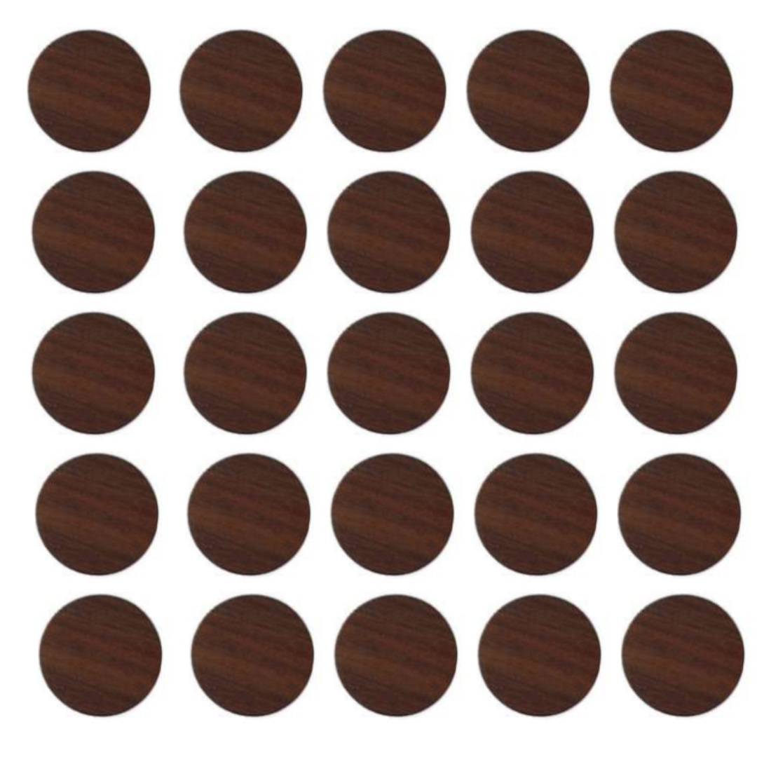 Заглушка самоклеящаяся диаметр 20мм, цвет орех караваджо - популярный декоративный элемент, используемый для маскировки отверстий, вследствие использования крепежа (конфирмата) при сборке мебели. Заглушки подбираются под цвет используемой древесной плиты. На листе 28 шт.