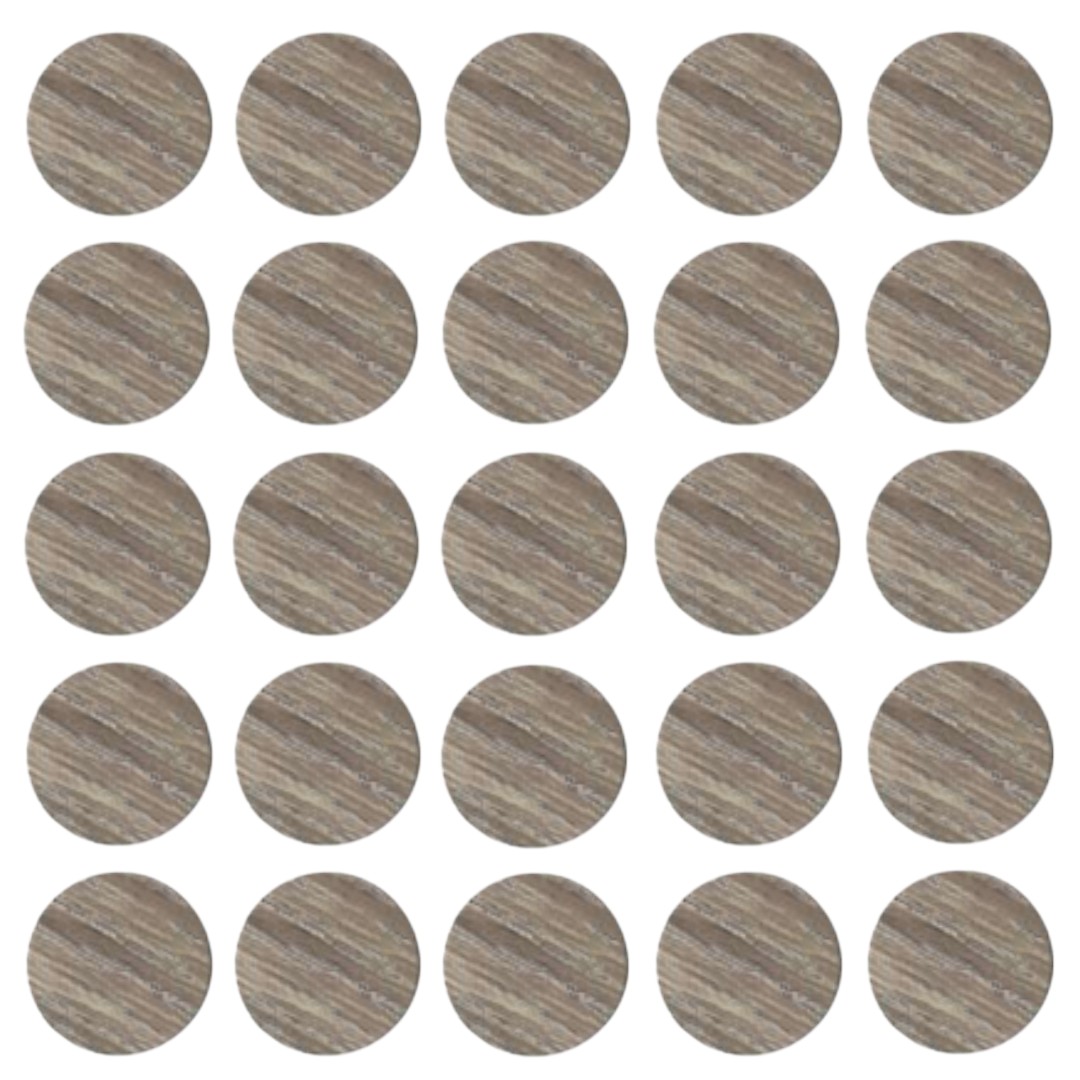 Заглушка самоклеящаяся диаметр 20мм, цвет дуб урбан - популярный декоративный элемент, используемый для маскировки отверстий, вследствие использования крепежа (конфирмата) при сборке мебели. Заглушки подбираются под цвет используемой древесной плиты. На листе 28 шт.