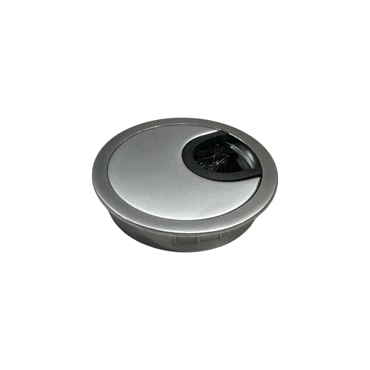 Заглушка кабель-канала металлическая D-60 мм алюминий - элемент офисного оснащения, устанавливаемый на рабочем столе в специальное отверстие, служащее для пропуска проводов оргтехники. Заглушка придает эстетичный внешний вид поверхности офисного стола.