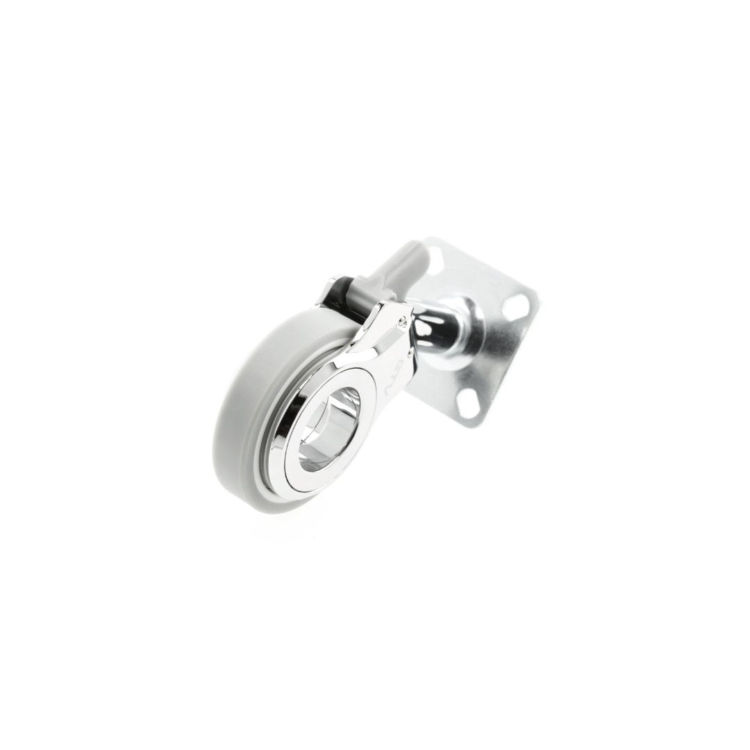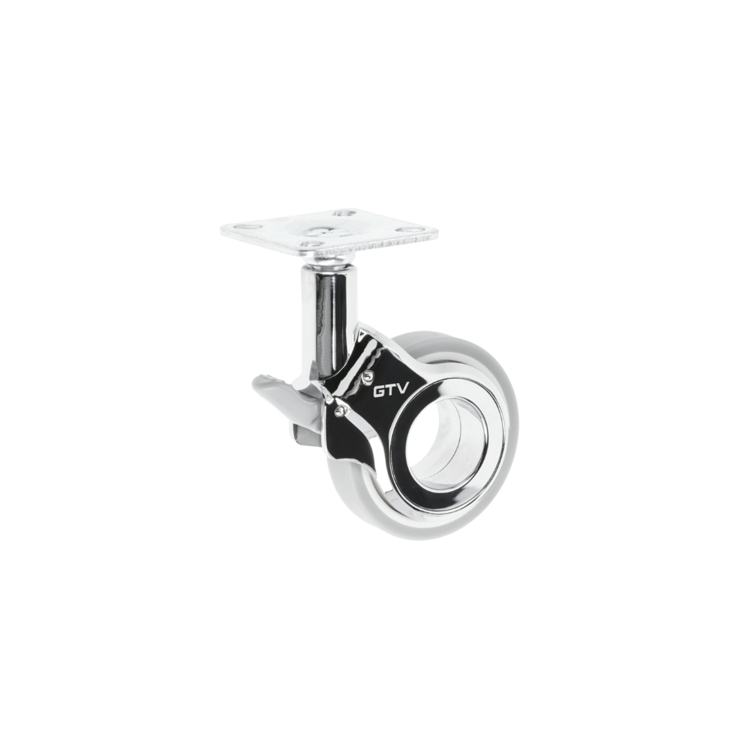 Поворотное колесо на платформе со стопором, которая крепится к мебели. Подойдет для разных типов передвижной мебели - от тумб до кресел.