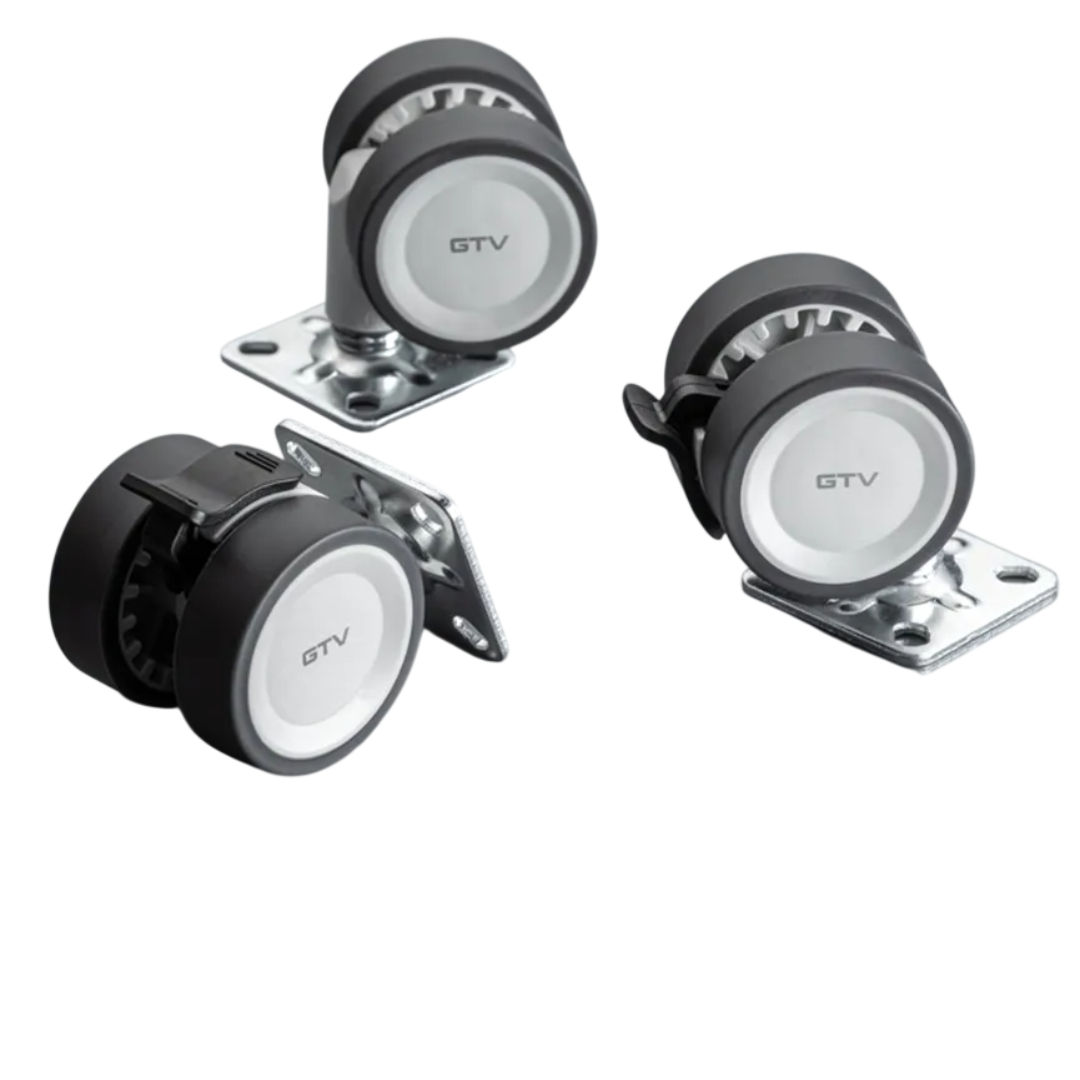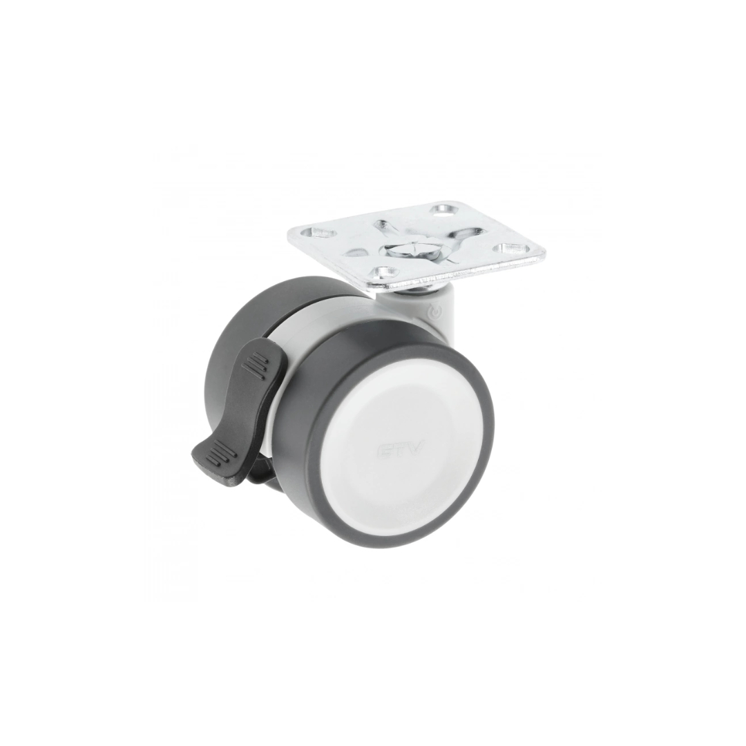 Поворотное колесо на платформе со стопором, которая крепится к мебели. Подойдет для разных типов передвижной мебели - от тумб до кресел.