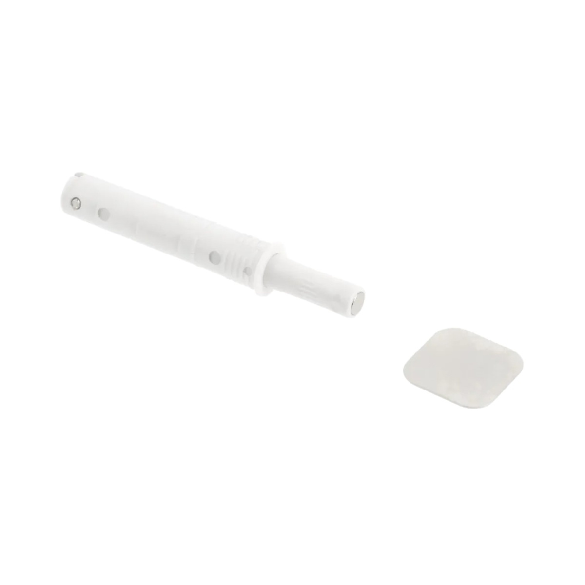 Выталкиватель врезной GTV Salto Nova короткий с магнитным окончанием, белый - функциональная фурнитура, предназначенная для открывания дверцы шкафа или выдвижения ящика в отсутствии мебельной ручки. Вы нажимаете на створку/ящик и открываете/выдвигаете фасад/ящик. Способ монтажа выталкивателя - врезной: для установки сверлится отверстие в торце корпуса мебельной конструкции.