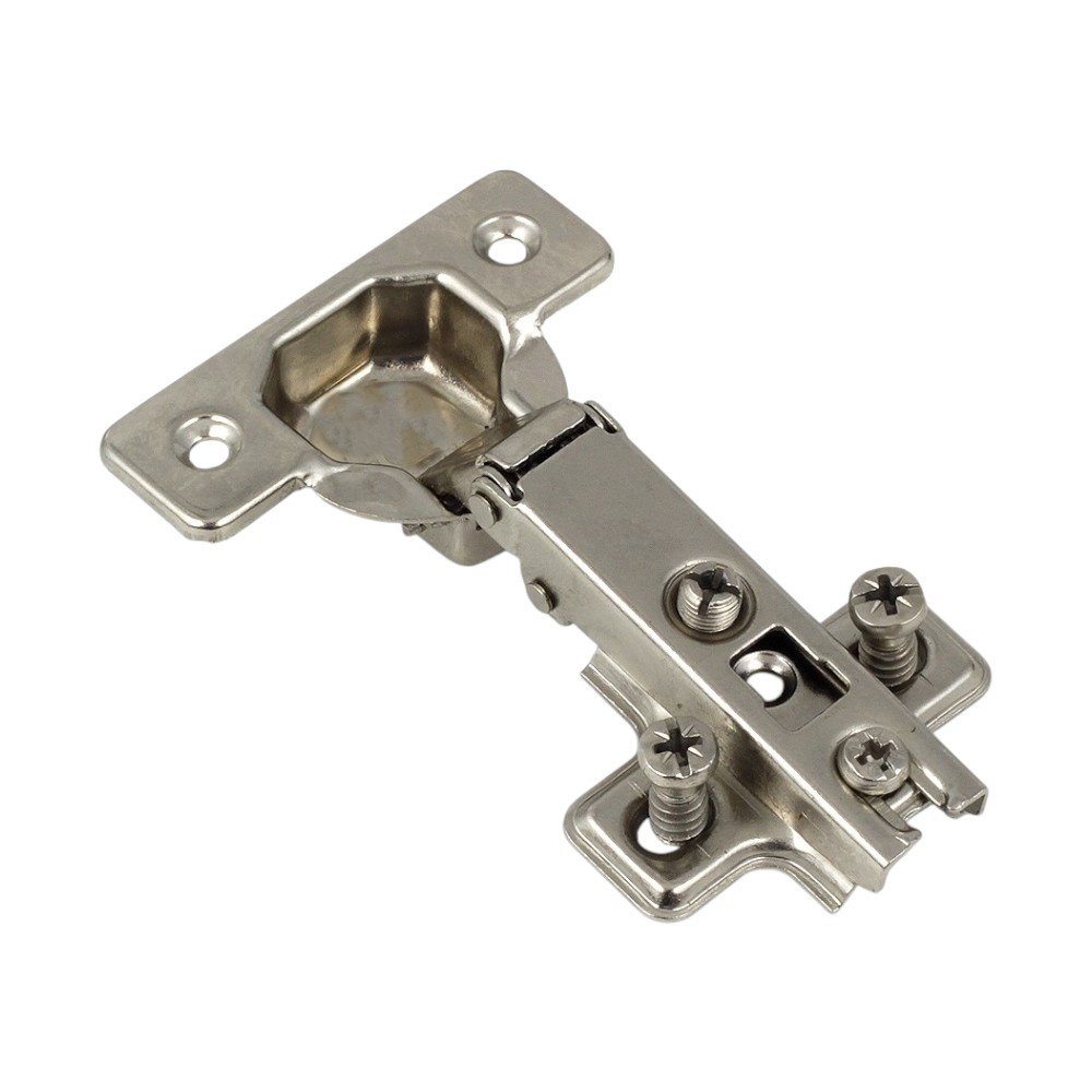 Петля полунакладная с планкой H-2 с евро, 45 мм - устройство, посредством которого фасад прикрепляется к корпусу мебельной конструкции и осуществляется открывание/закрывание дверцы.