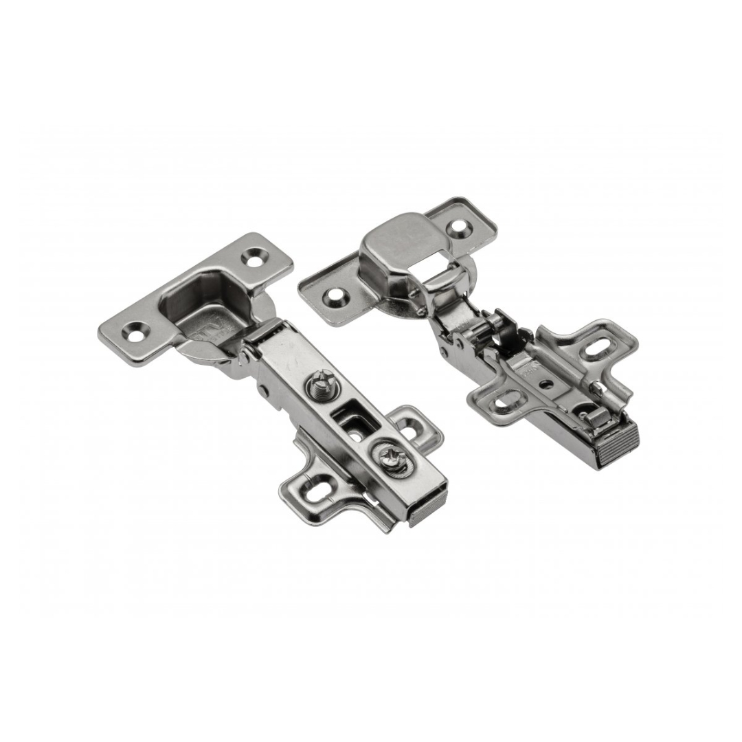 Петля накладная GTV ZP-CONL09 клиповая с планкой H-0, 45 мм с еврошурупом - устройство, посредством которого фасад прикрепляется к корпусу мебельной конструкции и осуществляется открывание/закрывание дверцы.