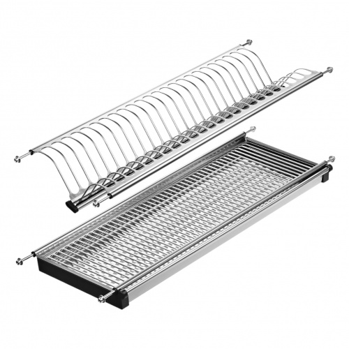Металлические конструкции больше подходят для навешивания, пластиковые – для установки на стол. Сушку в кухонный шкаф можно вмонтировать в него «навсегда» или приобрести съемную конструкцию. Первый вариант надежнее, но устройство сложно вымыть. Остановившись на втором решении, нужно внимательно подобрать изделие под размеры шкафа. Обычно модели имеют стандартную ширину (от 40 до 90 см) и глубину. Каждый из размеров рассчитан на определенный груз. Например, самые маленькие модели выдерживают 10-12 тарелок.