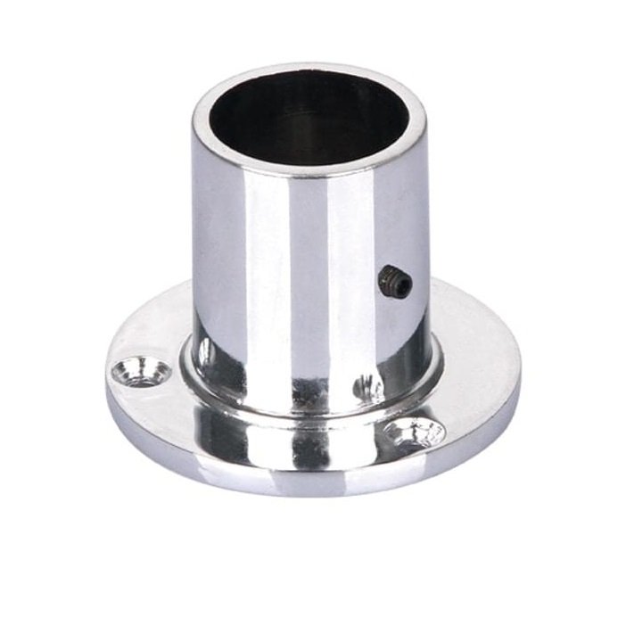 Фланец для трубы d-25 высокий с фиксатором, хром - держатель, используемый для установки круглой трубы (D=25 mm), при сборке торгового оборудования.
