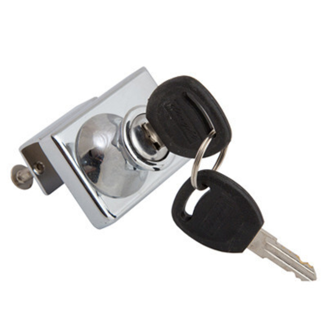 Замок мебельный 409 на 2 стекла, хром, металлический ключ - устройство, используемое специально для фиксации закрывания двух стеклянных створок шкафа или витрины. Замок устанавливается без сверления стекла.