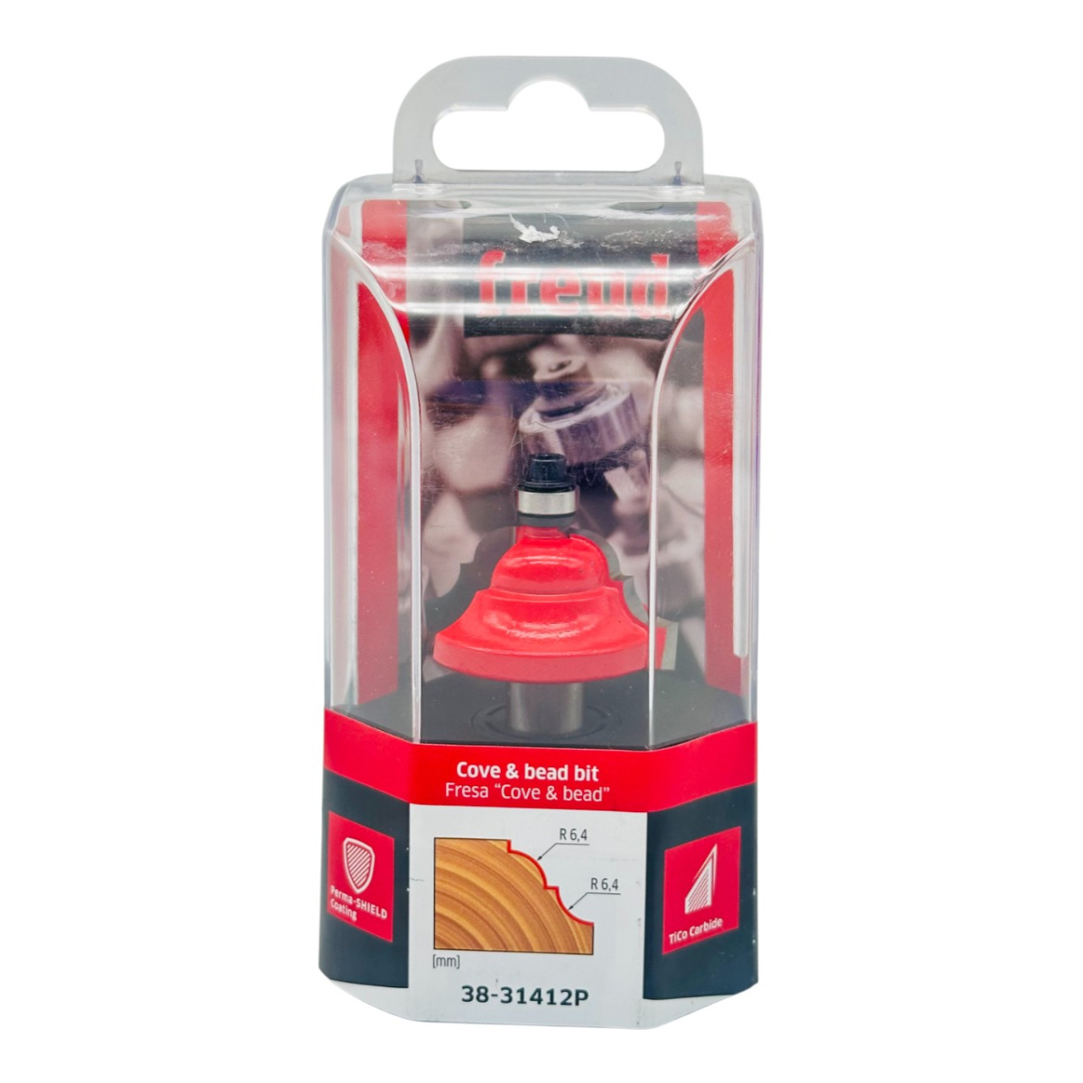 Фреза Freud с фигурным профилем Cove & bead 38.9 миллиметра с нижним подшипником, применяется для резки всех композитных материалов, таких как: фанера, твердая и мягкая древесина. Устанавливается на ручные или переносные вертикальные фрезерные машины. При снятии большого объема материалов, рекомендуется работать в несколько проходов.