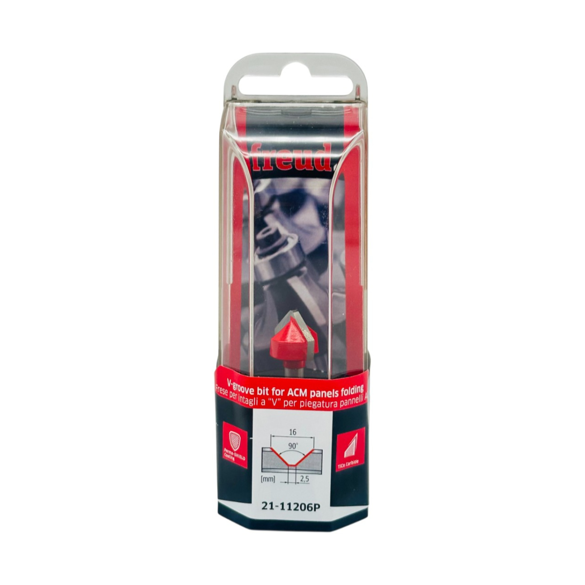 Фреза угловая V образная Freud диаметром 16 миллиметра для выборки пазов в АСМ, используюется для резки панелей АСМ. Устанавливается на станки с ЧПУ и другие автоматические вертикальные фрезерные машины, а также на ручные или переносные вертикальные фрезерные машины. При снятии большого объема материала рекомендуется работать в несколько проходов.