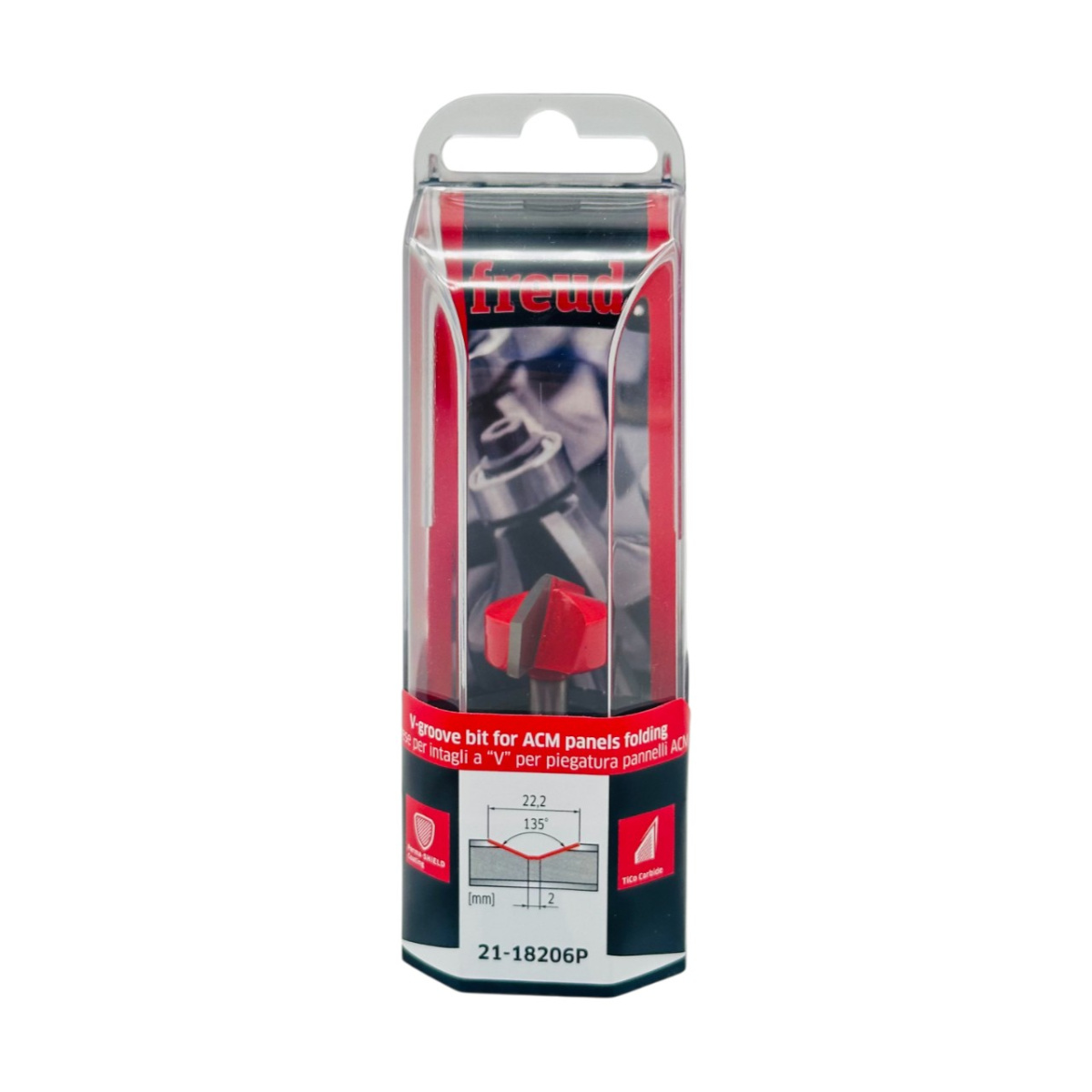 Фреза угловая V образная Freud диаметром 22.2 миллиметра для выборки пазов в АСМ, используюется для резки панелей АСМ. Устанавливается на станки с ЧПУ и другие автоматические вертикальные фрезерные машины, а также на ручные или переносные вертикальные фрезерные машины. При снятии большого объема материала рекомендуется работать в несколько проходов.